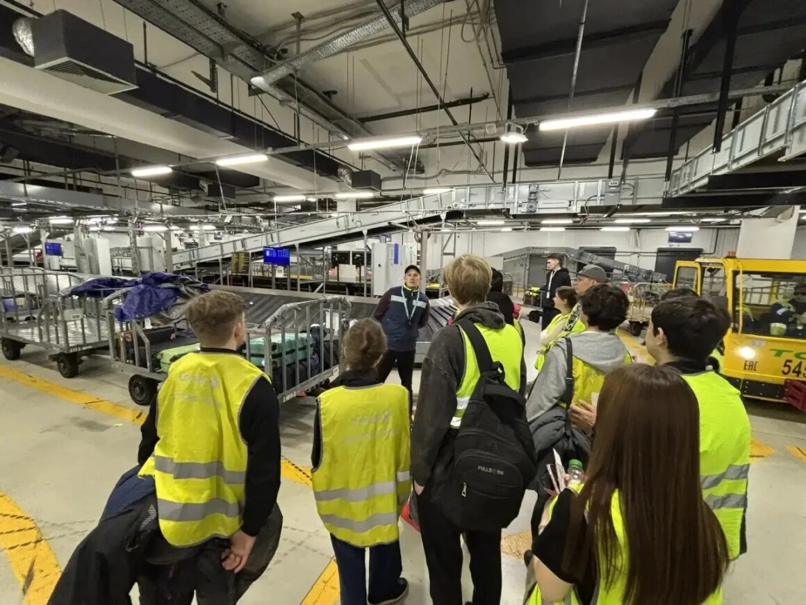 ✈️ Особый интерес вызвало знакомство с современными технологиями управления полётами и системой обеспечения безопасности. Также студенты побывали в багажном отделении, где познакомились с процессами обработки, сортировки и транспортировки багажа пассажиров. Специалисты подразделения подробно рассказали о применяемом оборудовании, стандартах безопасности и скорости обработки грузов в условиях высокой пассажирской нагрузки. Одним из самых запоминающихся этапов экскурсии стало посещение перрона аэропорта.